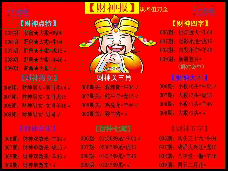 005期:🥨【澳门财神爷】③肖中特🥨中奖发财的必备猛料